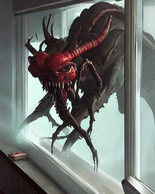 One Saturday, while nodding off to a Netflix movie, Patrice was jolted awake by Teena's screams. Heart pounding, Patrice bolted to her room and found Teena in a fit. "Mama," she cried out as she clung to Patrice and trembled in her arms like a frightened rabbit. "Baby, what's wrong?" Patrice asked, her heart still racing. She had never seen her daughter so frightened before. Teena pointed terror-stricken at the open window. "It…it crawled into my room!" Patrice frowned, then went over to the window. Down below, darkness shaded the back alleyway between her apartment building and another. An arc of light crept near the entrance where a street light glowed. There were garbage cans, and nothing else.